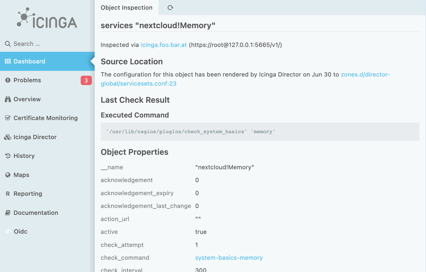 In Icingaweb2, there even is a section at the bottom of the service window called ’ Custom Variables’, where there is a line indicating that the mode variable is set to ‘connection-time’ (or other modes if I change it).