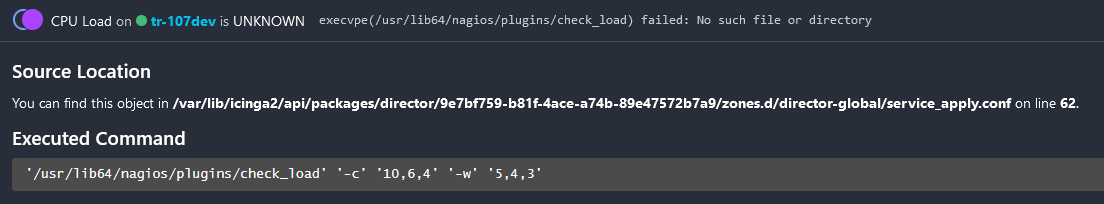 execvpe(/usr/lib64/nagios/plugins/check_load) failed: No such file or directory