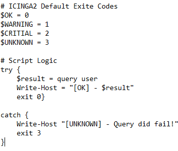 so I have an issue with my Powershell Script. It is located under C:\Program Files\ICINGA2\sbin\check_users.ps1, as per this “Guide” a Person once wrote here > Windows PowerShell Checks with Icinga2 - Meta Icinga / Tutorials and Guides - Icinga Community