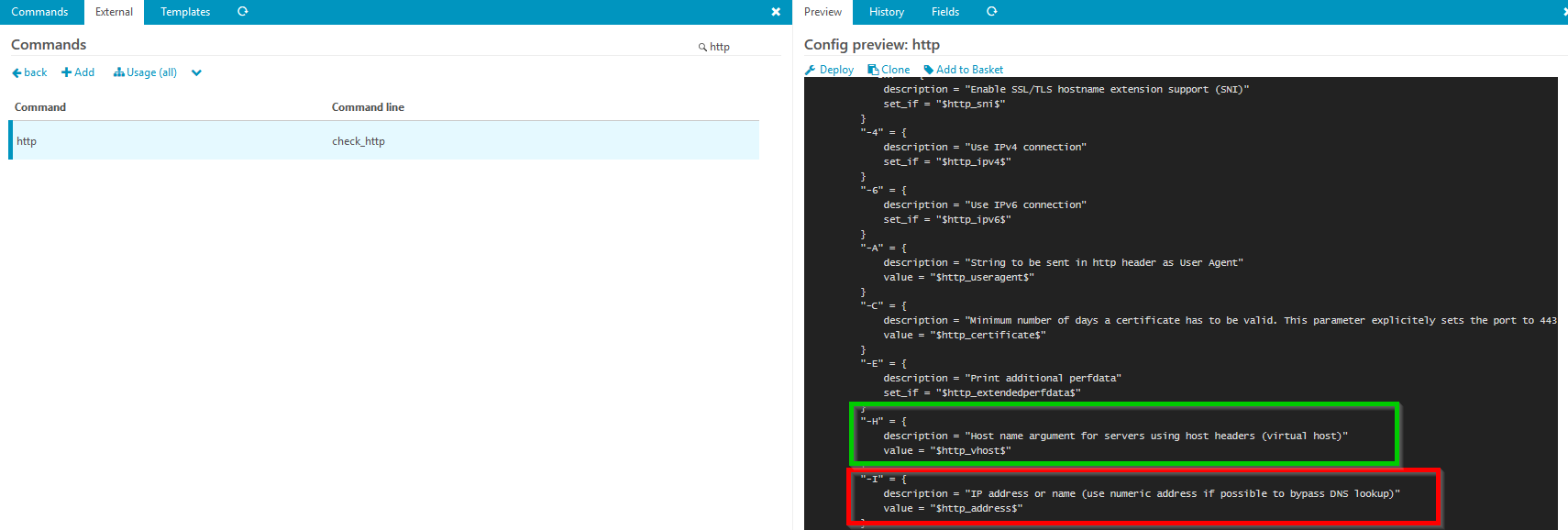 http://YOUR-MONITORING-HOST/icingaweb2/director/commands?type=external_object#!/icingaweb2/director/command/render?name=http