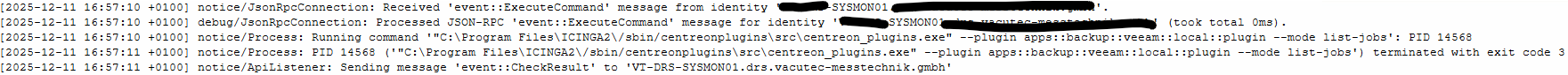 I’m running into an issue with executing Centreon plugins via the Icinga2 agent on Windows, and after checking with the Centreon support team, it seems the problem is related to the Icinga2 configuration rather than the Centreon plugins themselves.