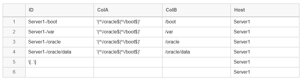 I am stuck when i try to reject rows from the import source based on the filter expression. Custom var fs_ignore=’/(^\/oracle$|^\/boot$)/’