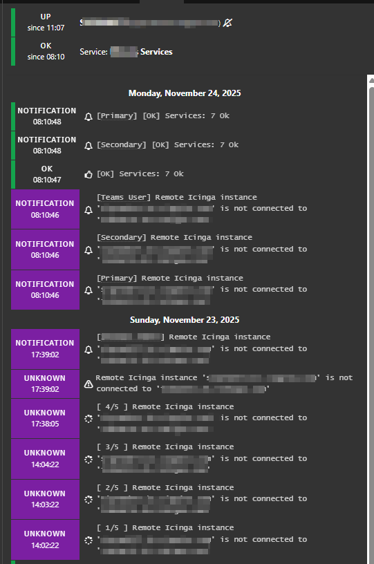 But then when the device comes online at 8:10:46, it notifies everyone via Teams then primary and secondary that there is an issue… before immediately sending an “ok” 1 second later. This exact behavior occurs for every service.